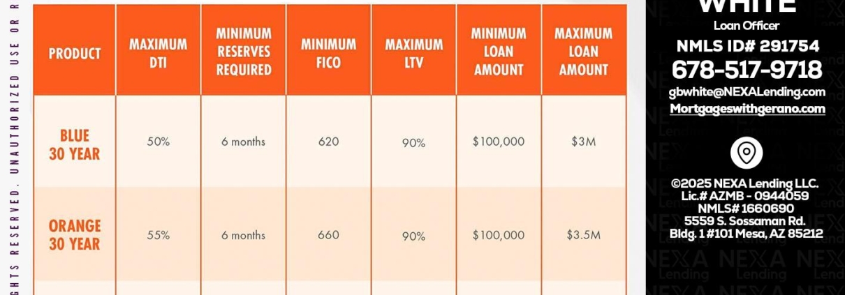 Hi, my name is Gerano White. I’m a Loan Officer with NEXA Lending LLC., offering personalized mortgage solutions, fast customized quotes, great rates and service with integrity.