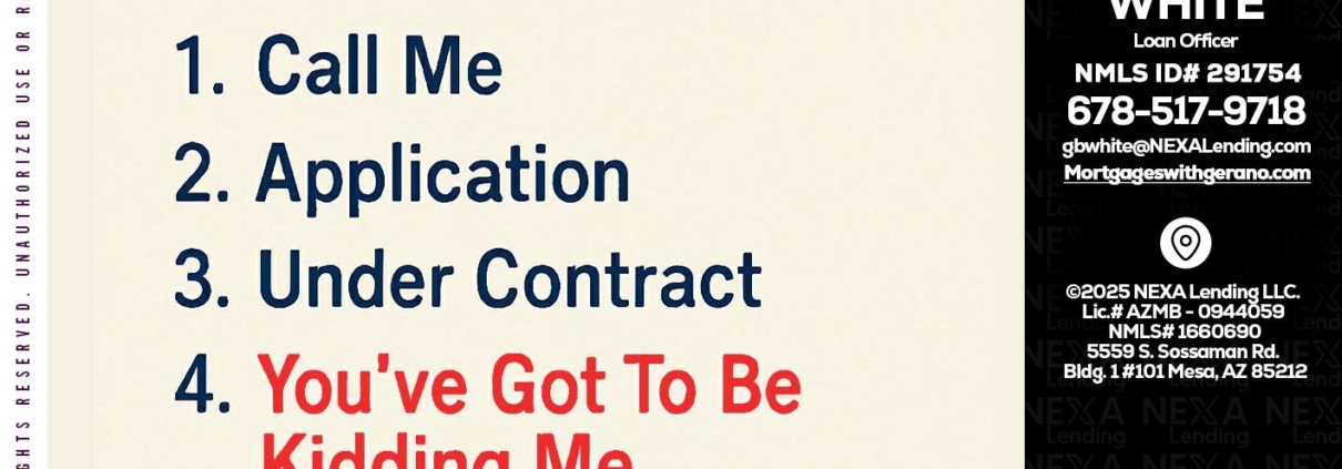 BUYING A HOUSE - Gerano White -Loan OfficerHi, my name is Gerano White. I’m a Loan Officer with NEXA Lending LLC., offering personalized mortgage solutions, fast customized quotes, great rates and service with integrity.