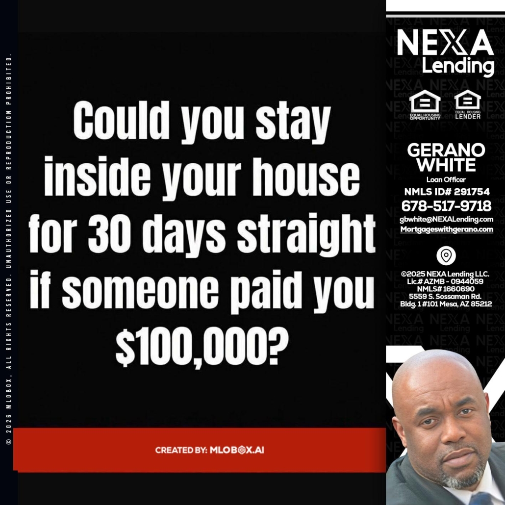 COULD YOU STAY - Gerano White -Loan OfficerHi, my name is Gerano White. I’m a Loan Officer with NEXA Lending LLC., offering personalized mortgage solutions, fast customized quotes, great rates and service with integrity.