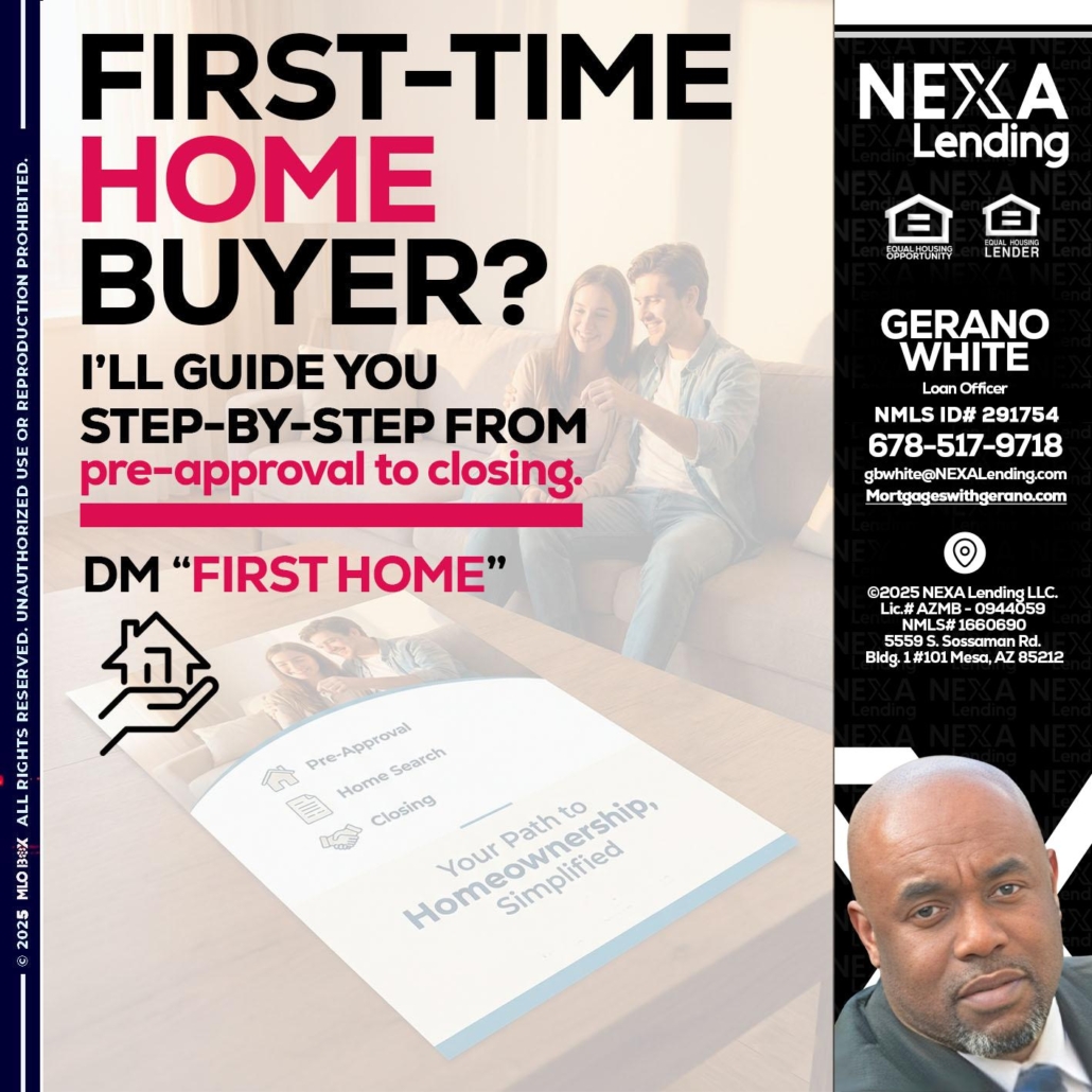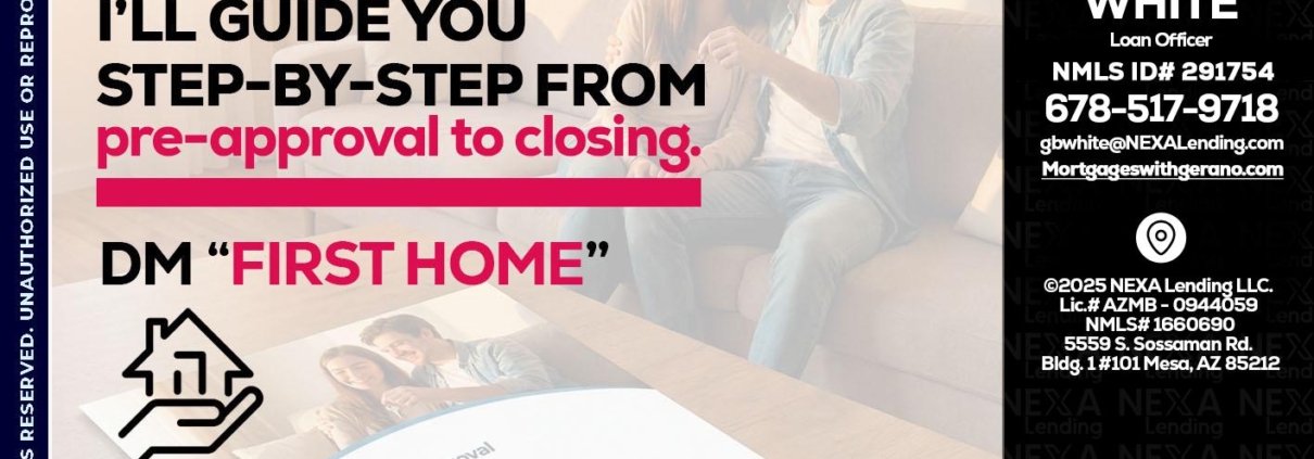 Hi, my name is Gerano White. I’m a Loan Officer with NEXA Lending LLC., offering personalized mortgage solutions, fast customized quotes, great rates and service with integrity.