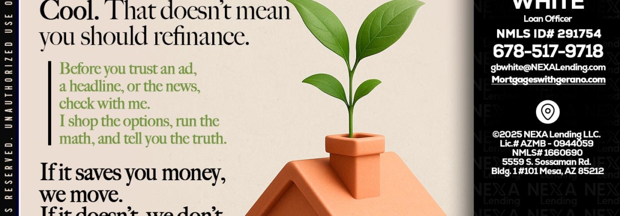 Hi, my name is Gerano White. I’m a Loan Officer with NEXA Lending LLC., offering personalized mortgage solutions, fast customized quotes, great rates and service with integrity.