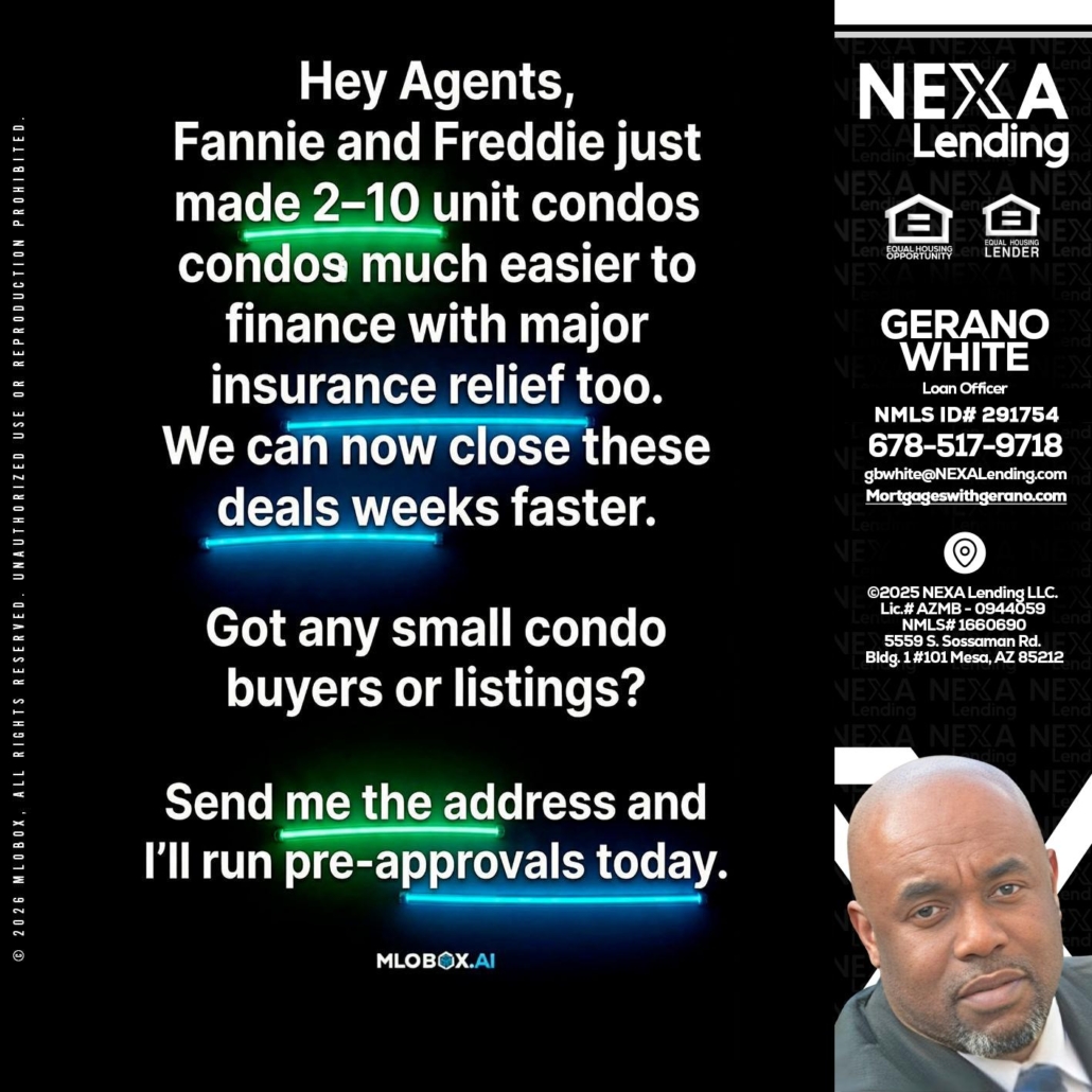 Hi, my name is Gerano White. I’m a Loan Officer with NEXA Lending LLC., offering personalized mortgage solutions, fast customized quotes, great rates and service with integrity.