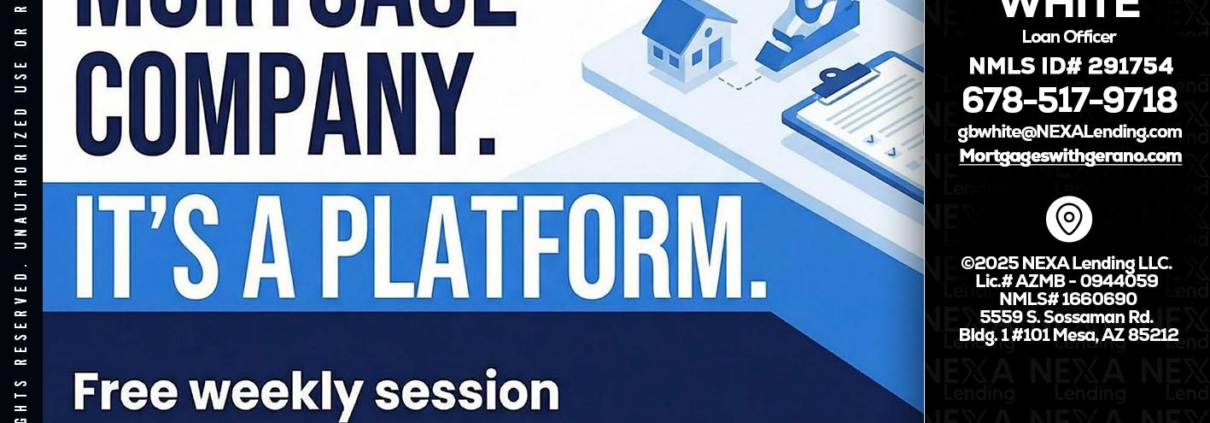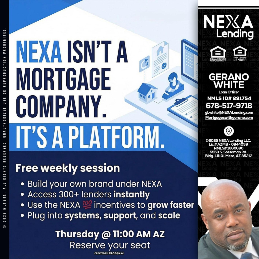 Hi, my name is Gerano White. I’m a Loan Officer with NEXA Lending LLC., offering personalized mortgage solutions, fast customized quotes, great rates and service with integrity.