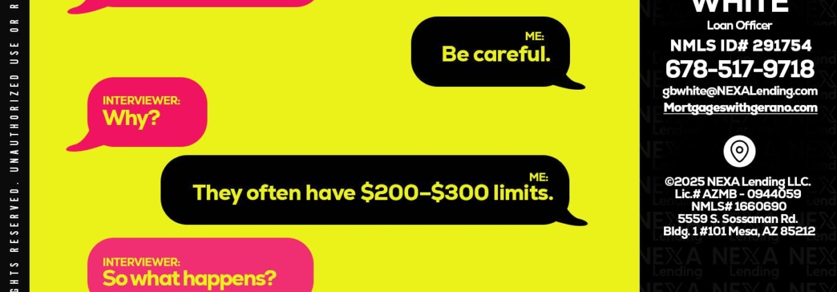 Hi, my name is Gerano White. I’m a Loan Officer with NEXA Lending LLC., offering personalized mortgage solutions, fast customized quotes, great rates and service with integrity.