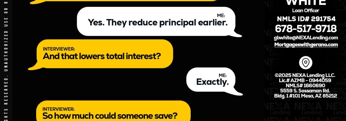 Hi, my name is Gerano White. I’m a Loan Officer with NEXA Lending LLC., offering personalized mortgage solutions, fast customized quotes, great rates and service with integrity.
