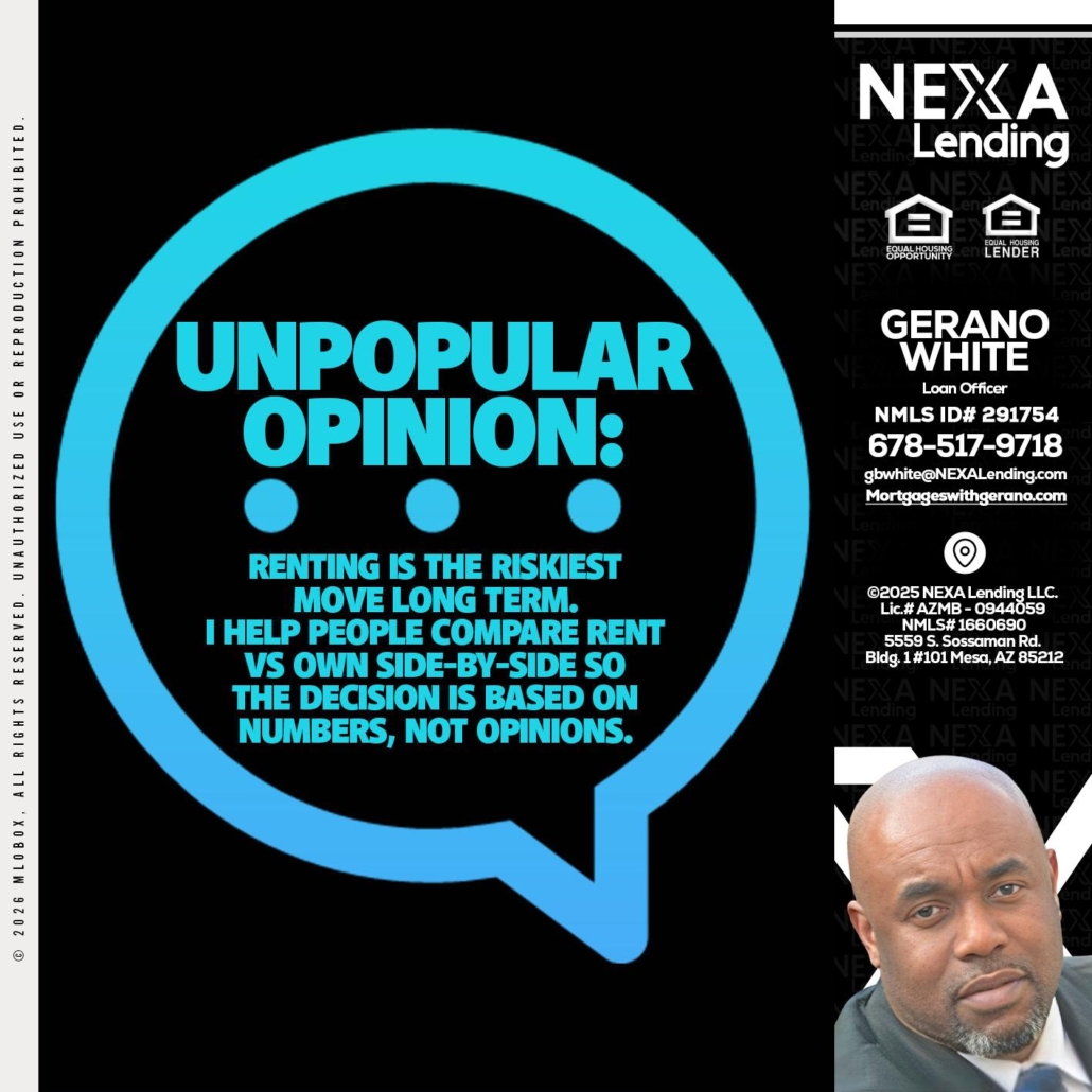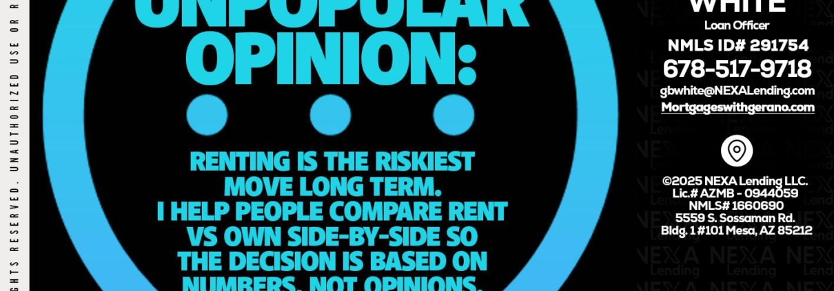 unpopular opinion - Gerano White -Loan OfficerHi, my name is Gerano White. I’m a Loan Officer with NEXA Lending LLC., offering personalized mortgage solutions, fast customized quotes, great rates and service with integrity.